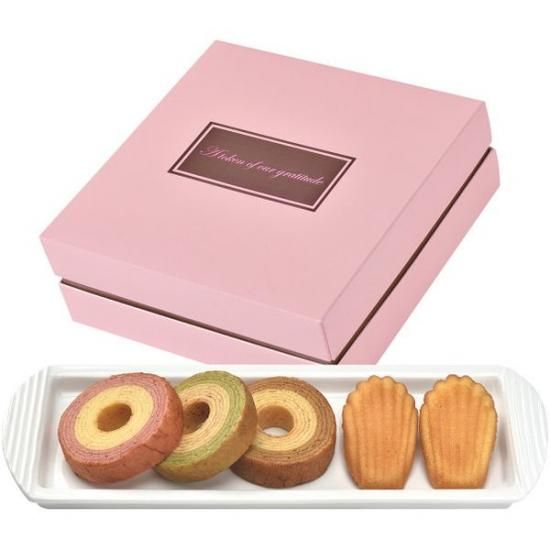 ふんわり食感の2層バウムクーヘンと、外はサクッと中はしっとりのマドレーヌ。感謝の気持ちを上品なパッケージに込めて。